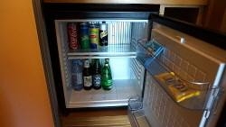 작은 냉장고에는 음료수와 촤칼릿이! 그리고 미니바에는 센스있게 와인잔까지!
