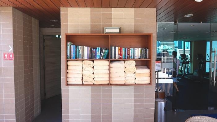 옆으로 이렇게 타월을 가져가시면되고, 그리고 그옆으로는 피트니스 센터가 있습니다.