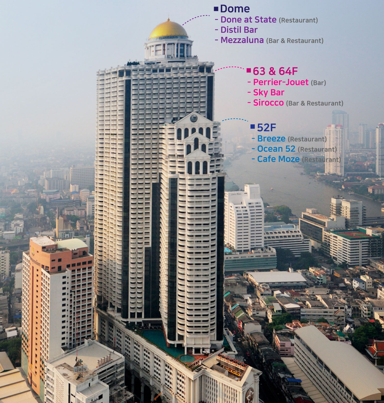 호텔 옥상의 63층에는 방콕의 유명 레스토랑으로 손꼽히는 시로코 레스토랑이 있는데, 이곳에서 방콕 최고의 야경과 함께 저녁식사를 즐길 수 있는 점때문에 인기가 높습니다.