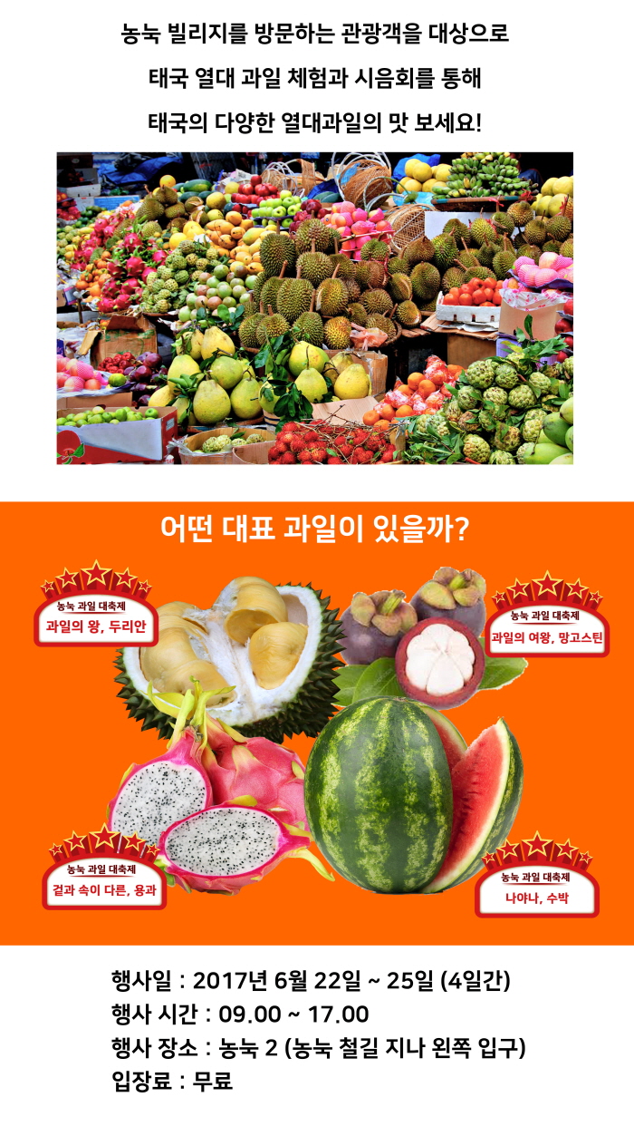 제목  |   [태국여행정보] [다돌이 뉴스] 파타야 농눅빌리지 열대과일 대축제